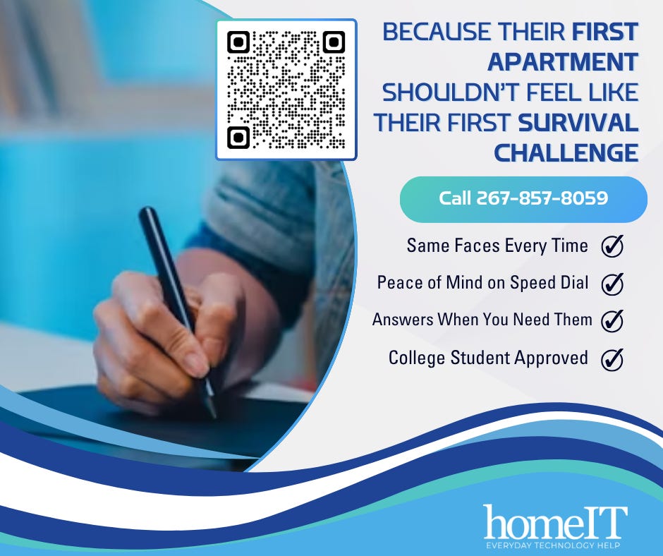 Whether your student is moving into a West Chester University apartment, a first shared house, or attending school farther away, our virtual support keeps them connected and on track.