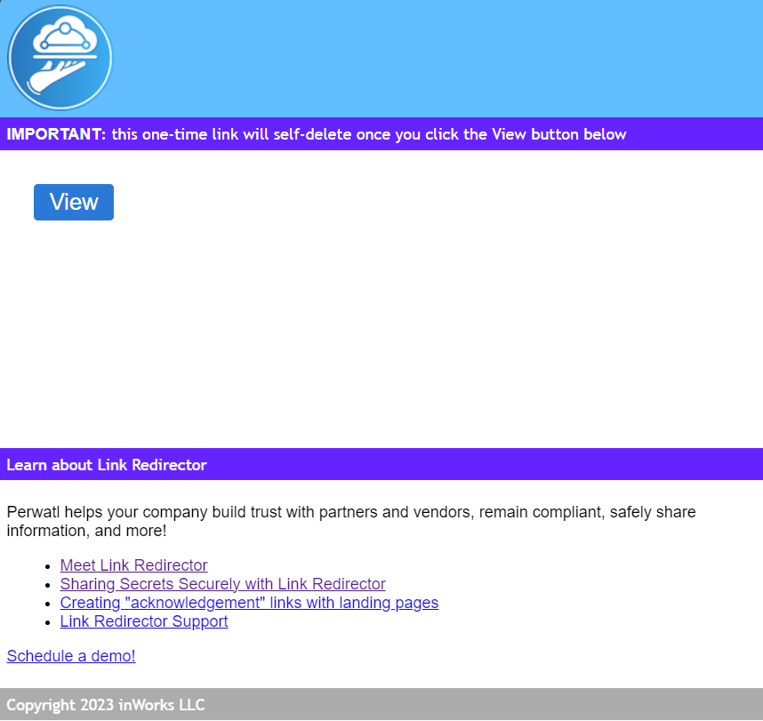 The first change is adding a View button to the OTL page. Many email systems - Microsoft 365 included - now check links for malicious payloads, and we found that without the View button, our links were automatically deleted!